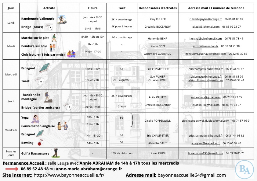 la plupart des villes de France, de faciliter l’intégration des personnes nouvellement arrivées à Bayonne et dans les environs, et de leur donner, en toute amitié, cette chaleur de l’accueil dont la plupart ont besoin pour rompre l’isolement.