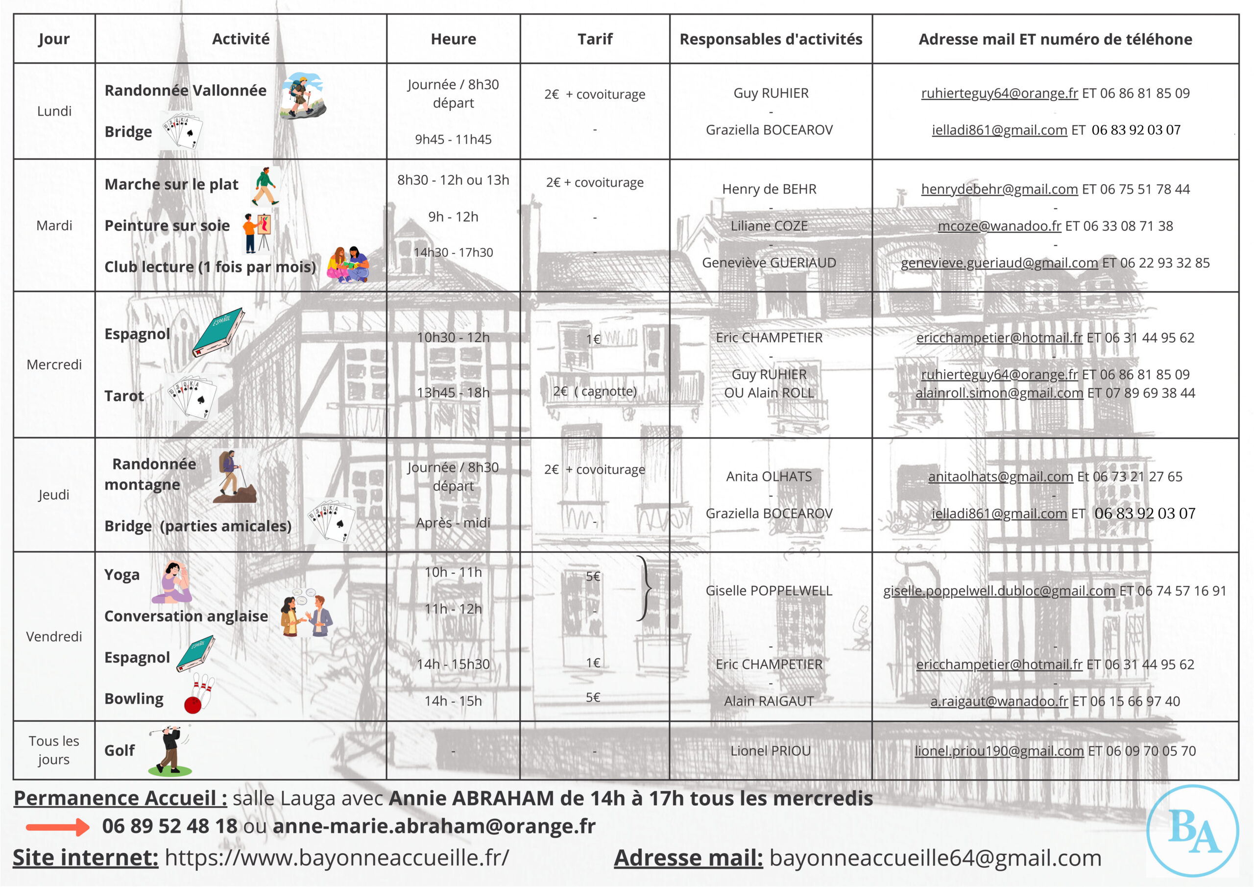 la plupart des villes de France, de faciliter l’intégration des personnes nouvellement arrivées à Bayonne et dans les environs, et de leur donner, en toute amitié, cette chaleur de l’accueil dont la plupart ont besoin pour rompre l’isolement.